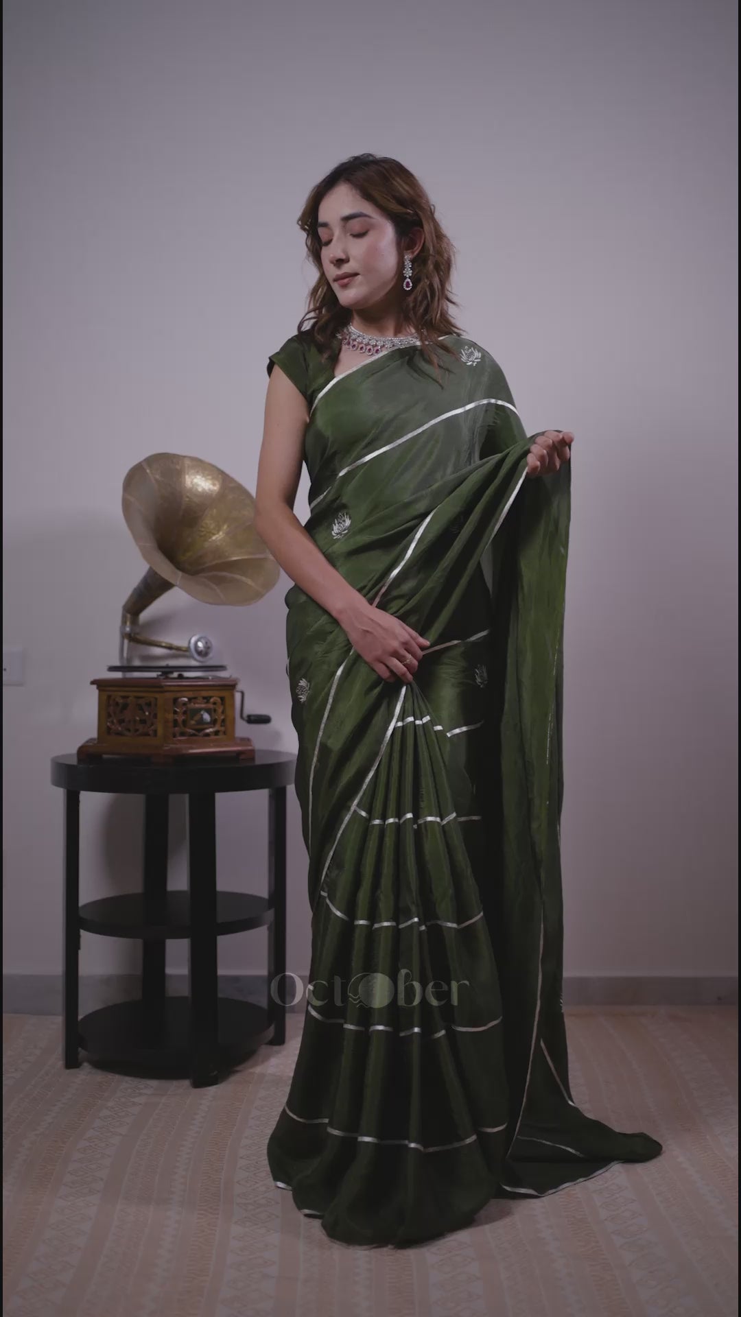 Sage Stripe Real Silver Silk Saree